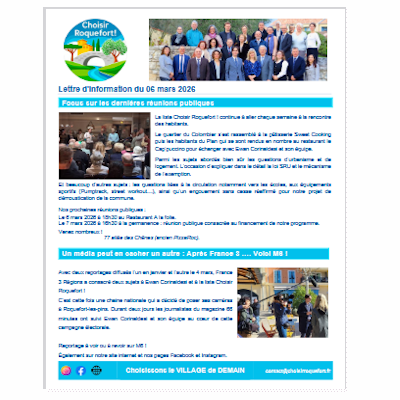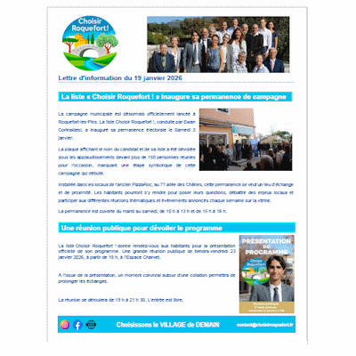 Si vous souhaitez rester informé sur l’actualité de la liste, être éclairé sur les choix de l’actuelle mairie ou simplement connaitre les dates nos prochaines réunions de quartier, notre Newsletter est disponible !